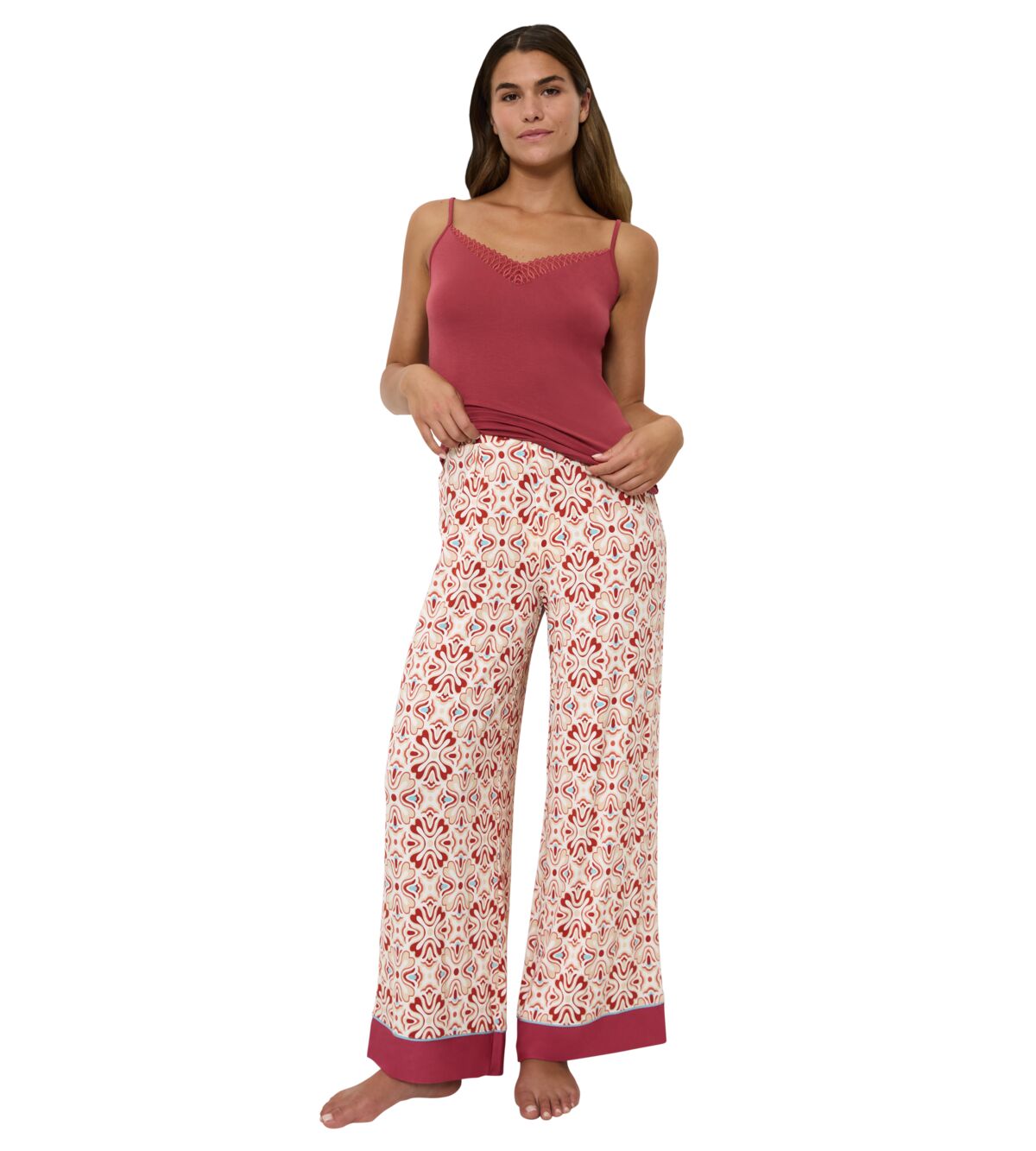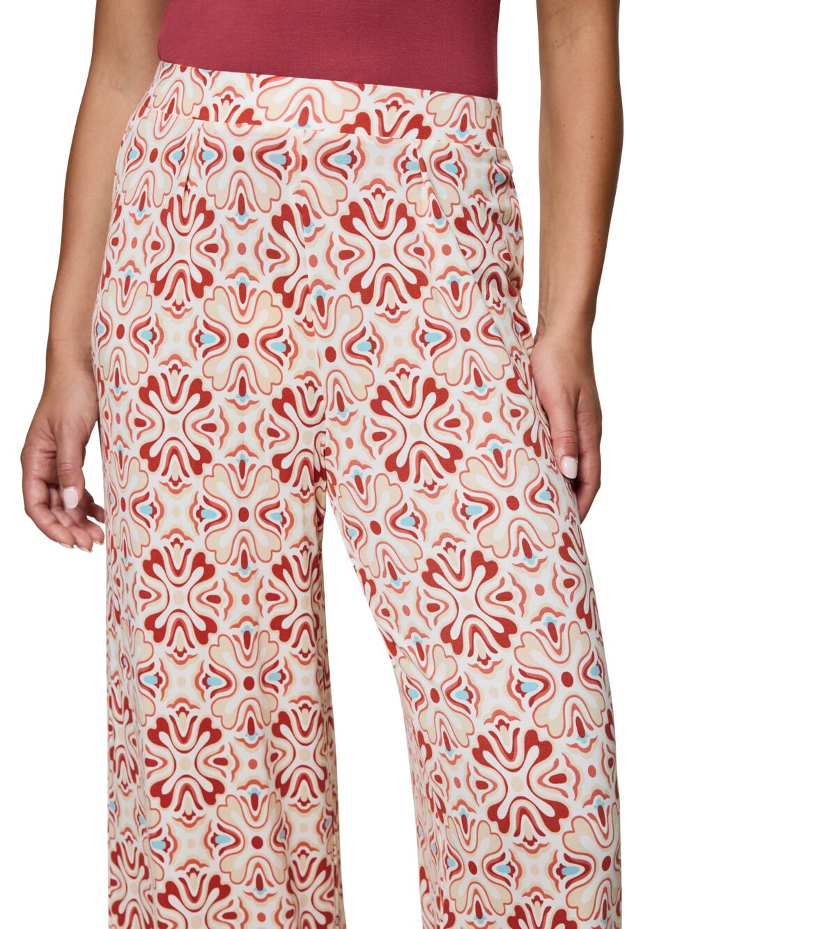 بنطال أنيق بساق واسعة مصنوع بالكامل تقريبًا من قماش مودال تينسل™ الناعم والمرن. يضمن التصميم العصري والثنيات الأمامية الناعمة مظهرًا جذابًا.