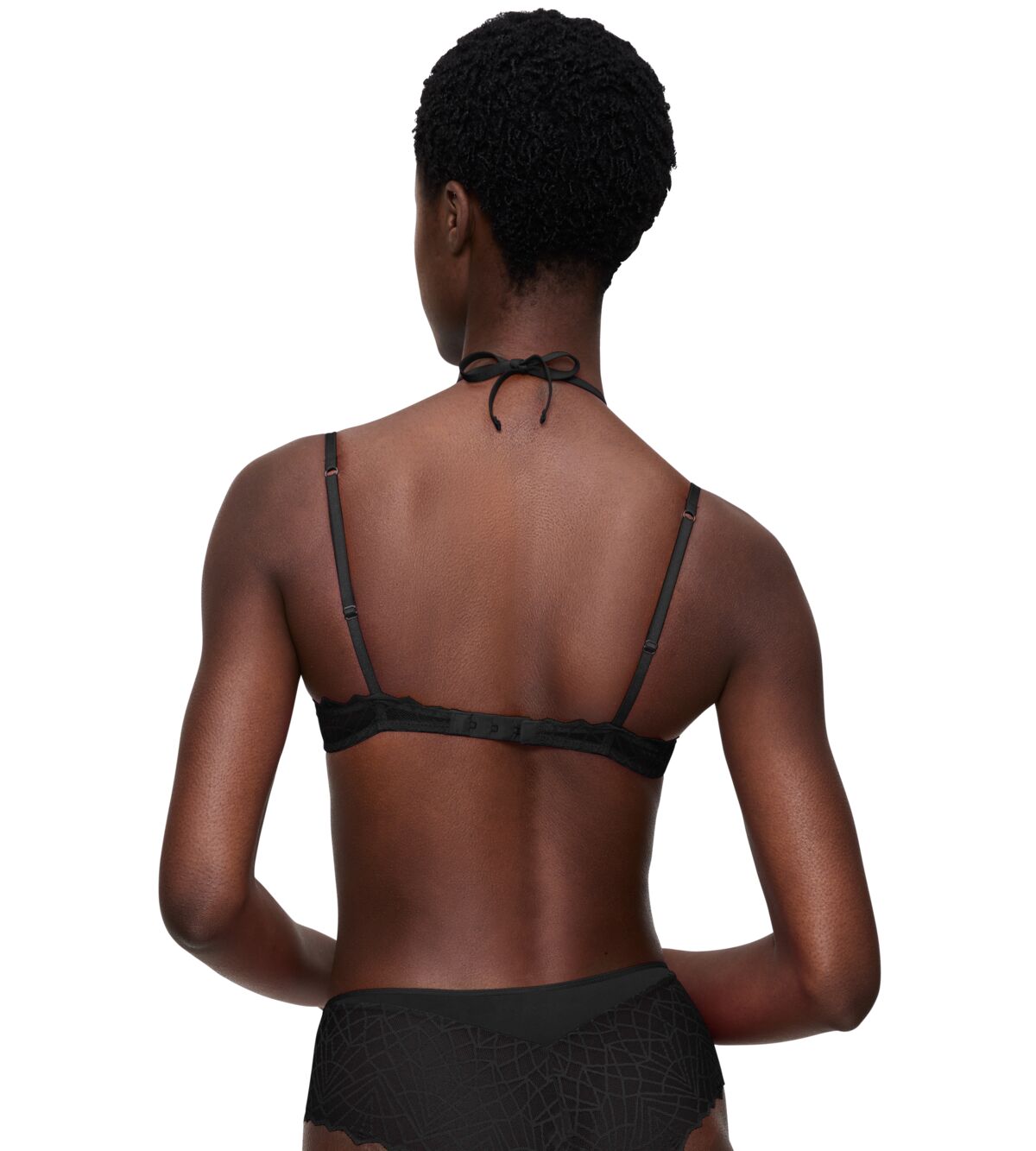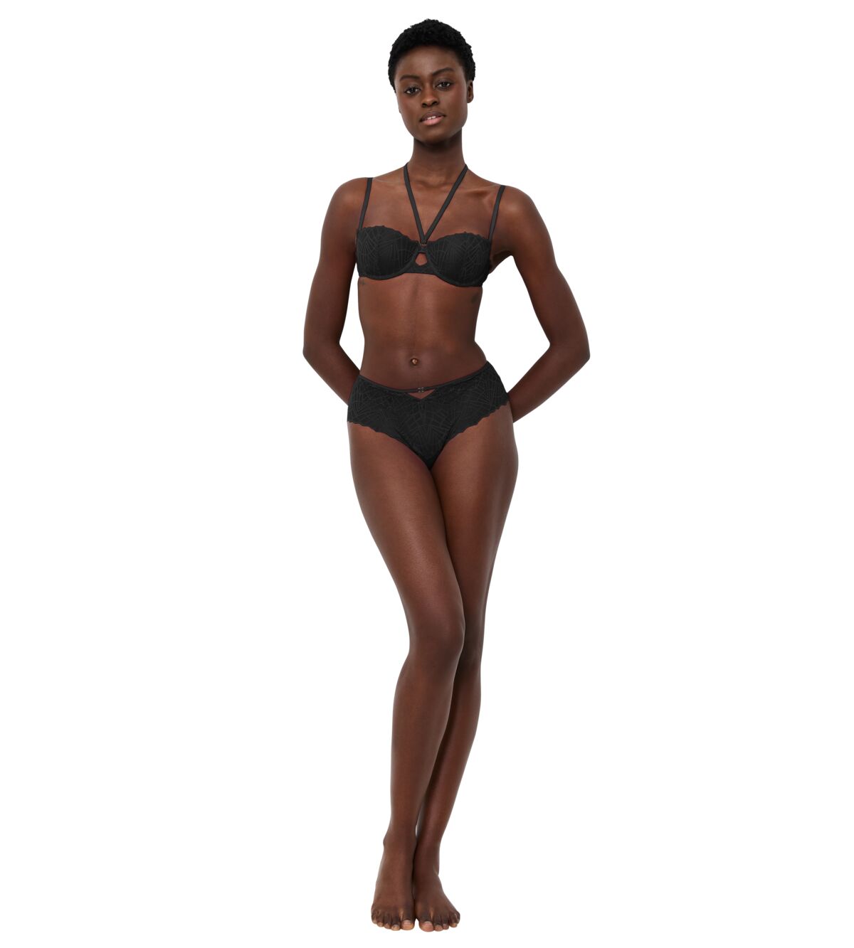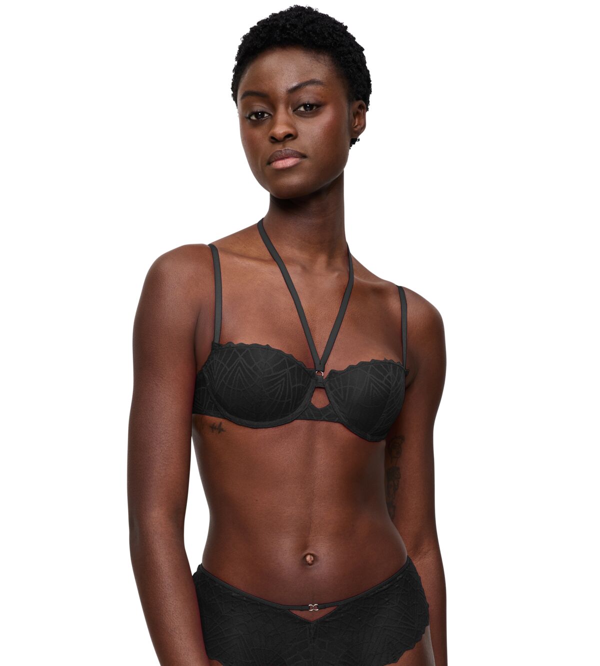Chic yet seductive. We designed this minimal-coverage balconette bra to maximise your cleavage. The graphic lace design and central keyhole details serve up extra style points.