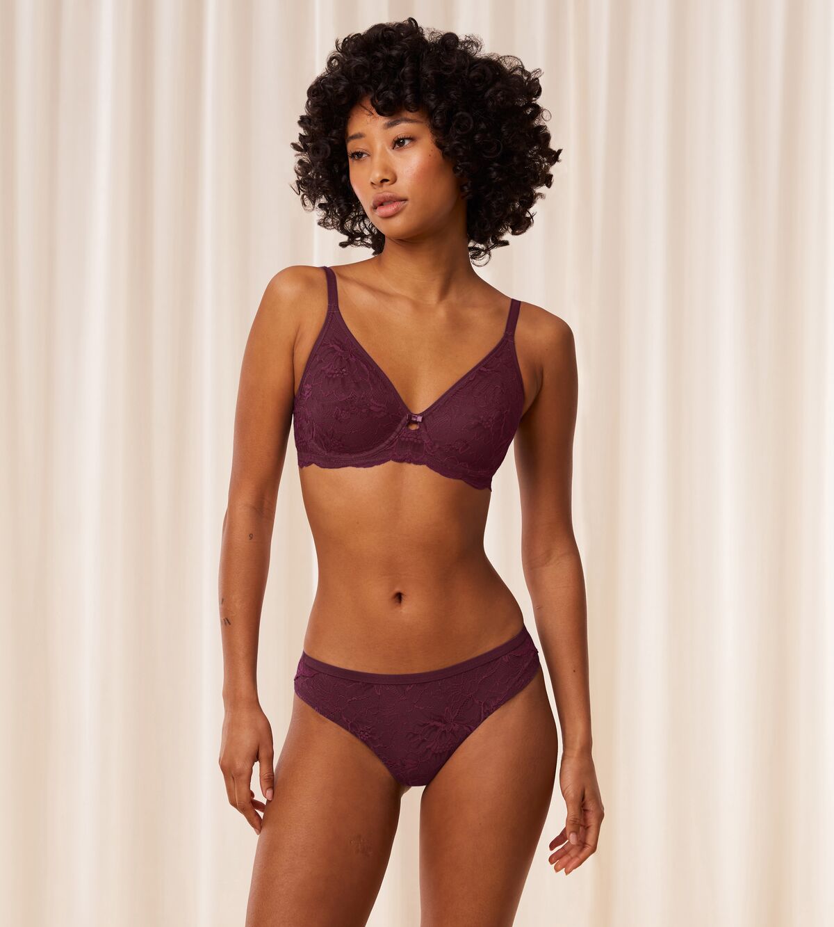 This bra wraps elegant lace around you for a smooth and invisible look under clothes. Moulded smooth cups and functional lining provide bust support and shaping, for a natural look.