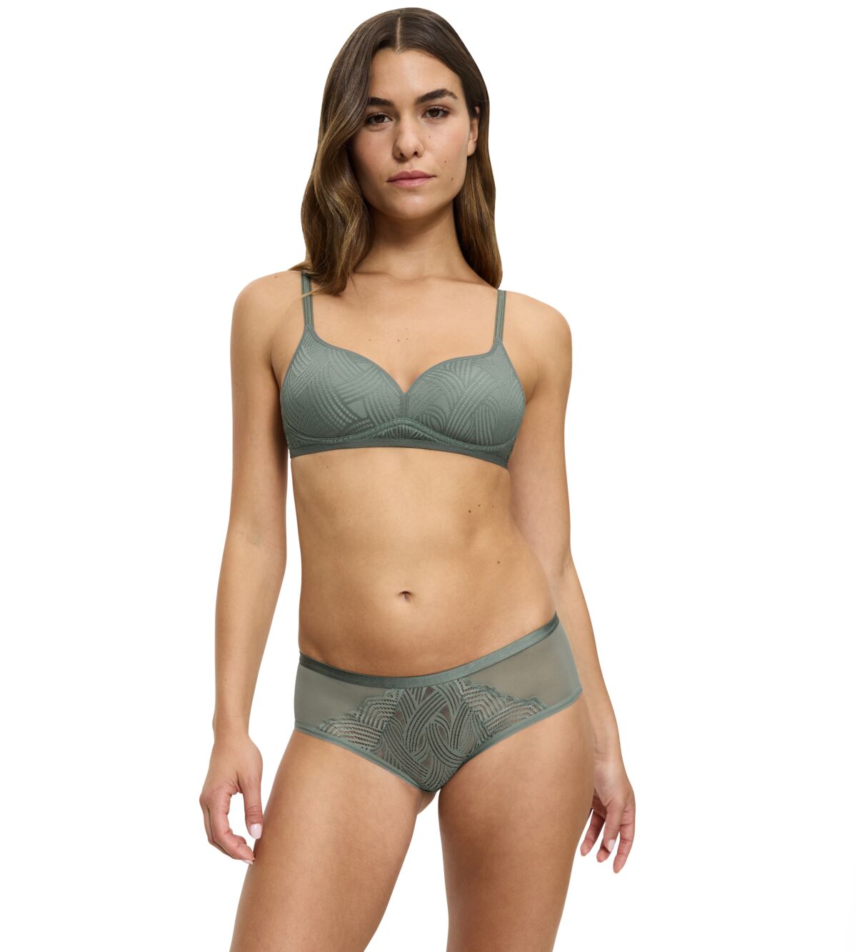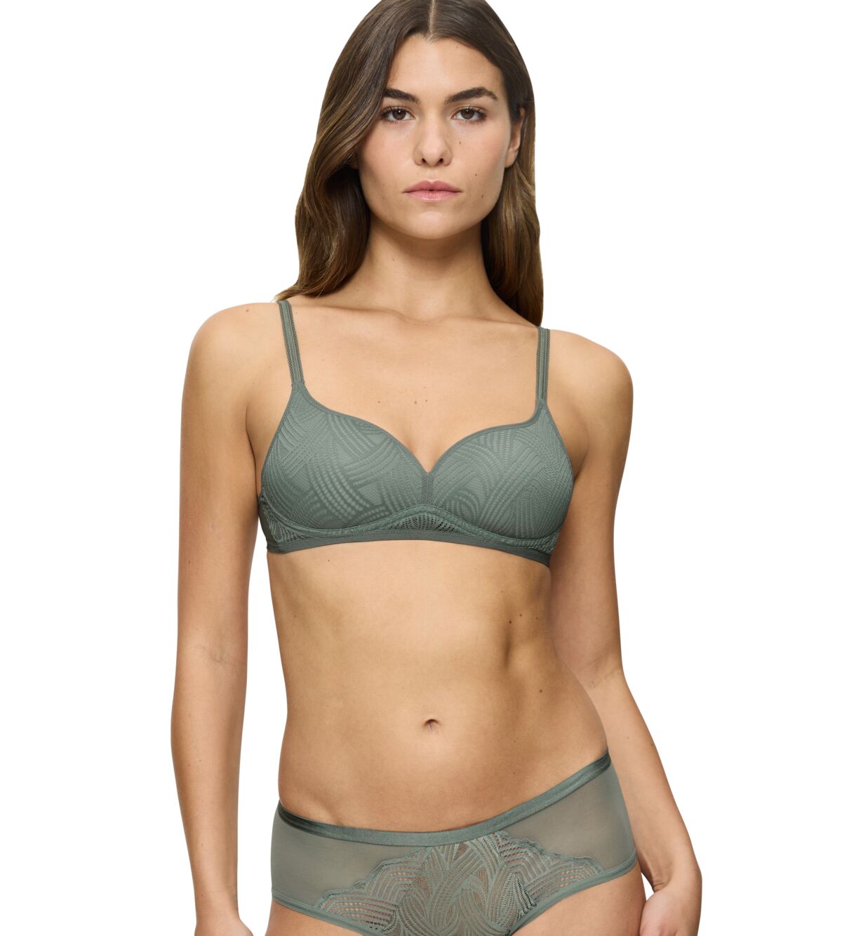 - Smooth moulded and graphic all-over lace cups