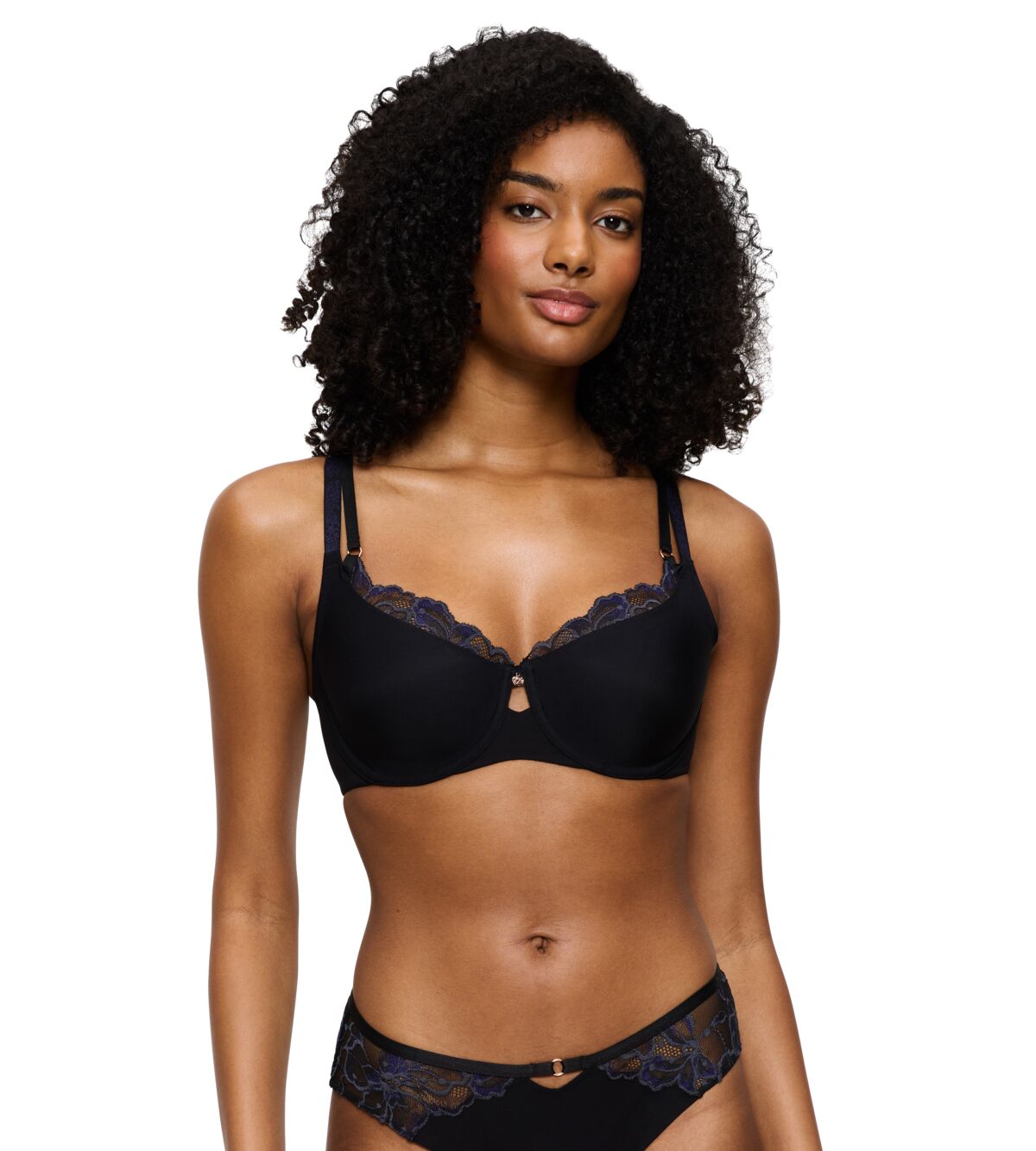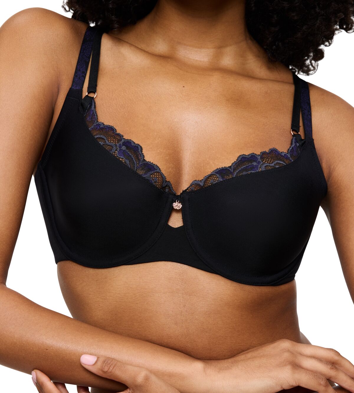 Delicate lace fabric meets minimiser effects in this supportive moulding bra. Perfect for larger cup sizes.