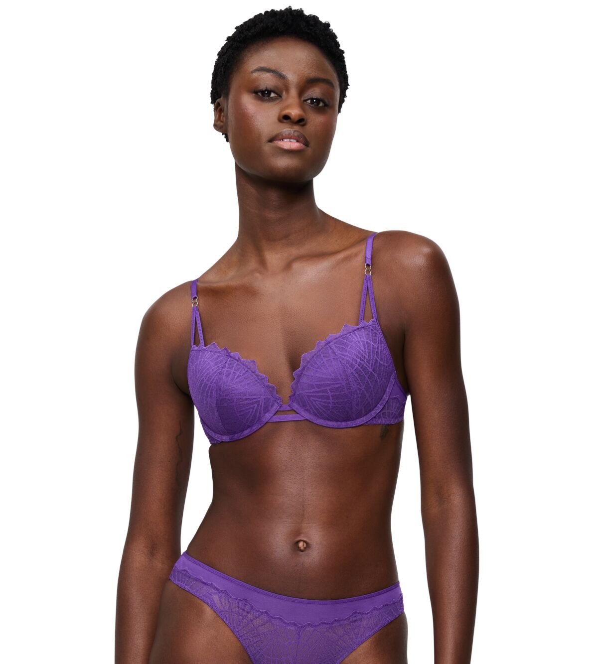 A push-up neckline with lightweight cups. This graphic lace design bra offers the best of both worlds. For a bold and seductive silhouette.