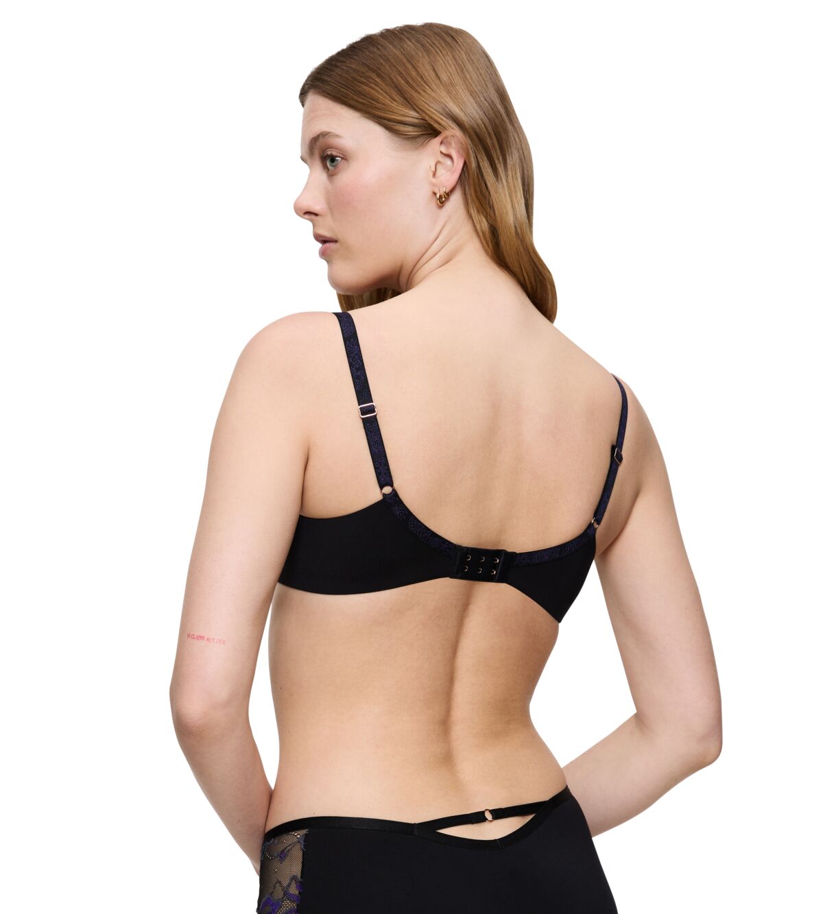• Scooped back and four-section cup for enhanced support and push-in effects