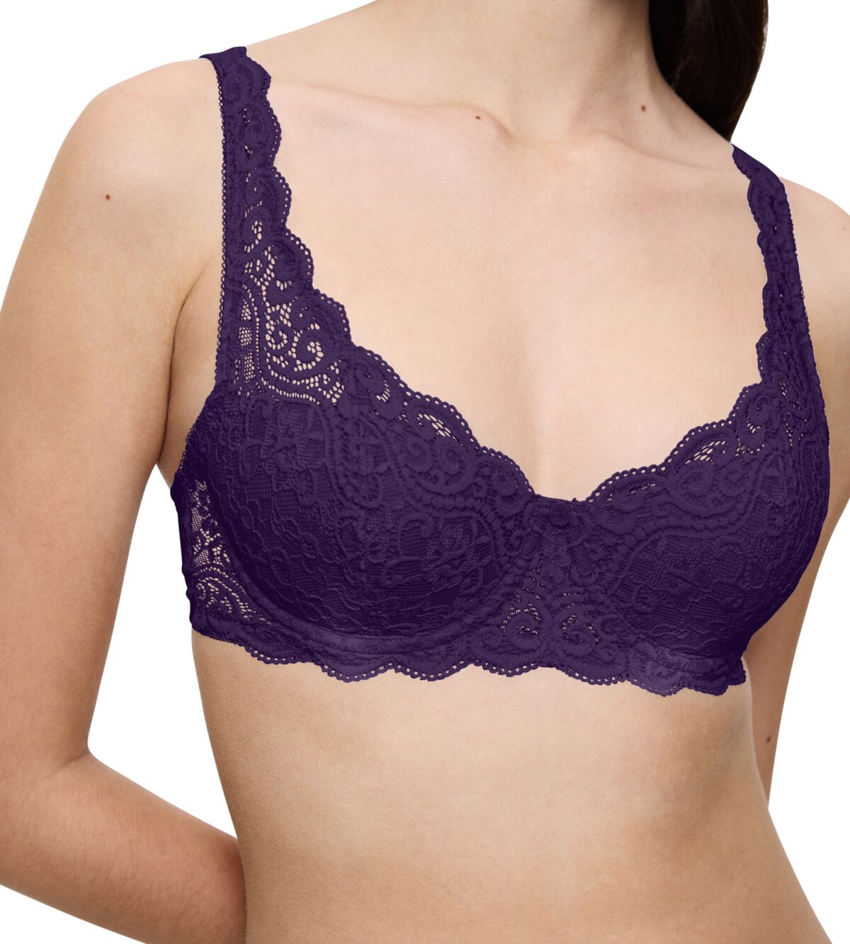 - Supportive soft padded cups covered with comfortable stretch lace